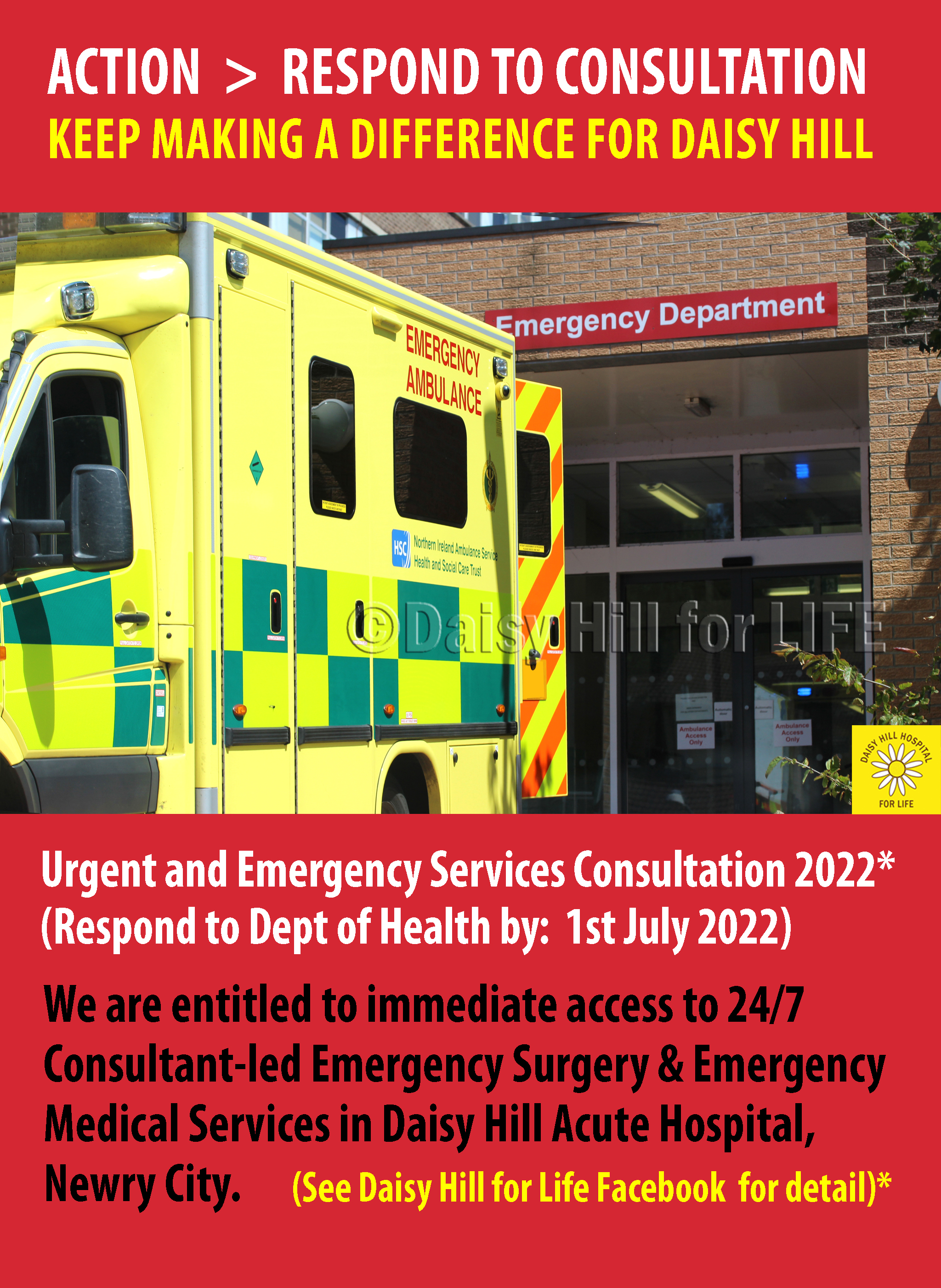 Pingback: 2 Days to go! You need to Know! Daisy Hill Acute Hospital, Newry and the DoH NI Urgent and Emergency Care Services Consultation 2022 – Daisy Hill Hospital for Life