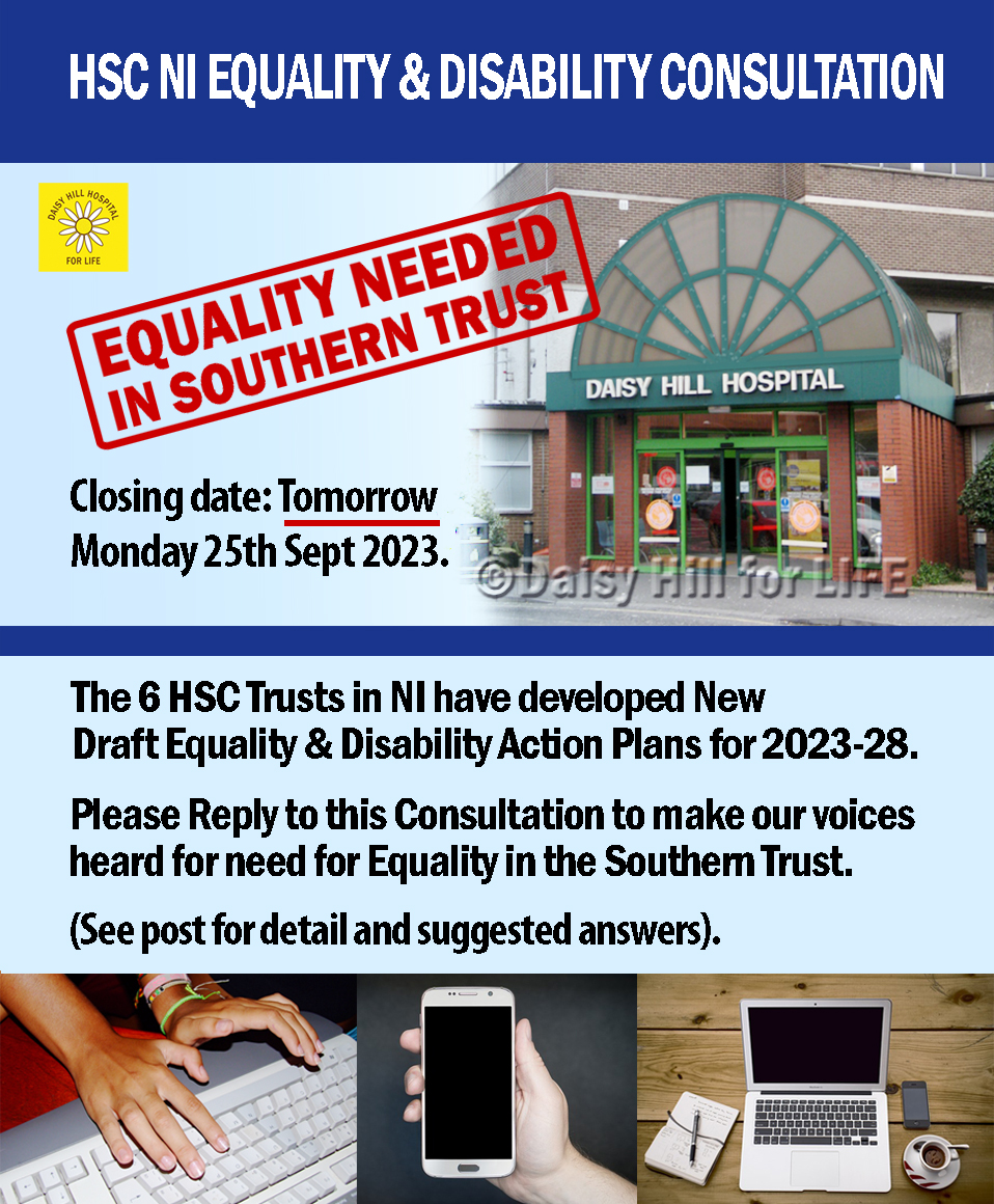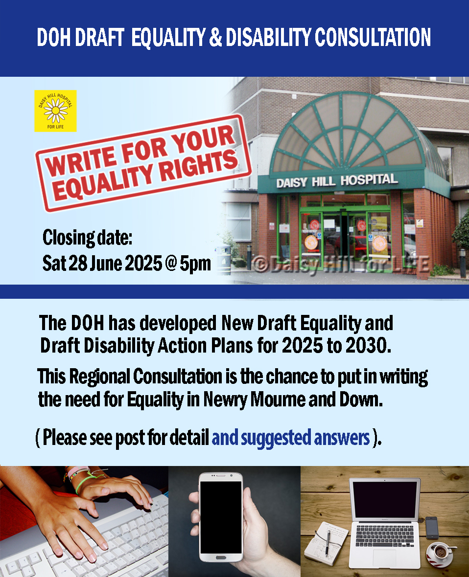 LAST DAY! CLOSES TODAY! Sat 28th June 5pm. STILL TIME to Write For your Equality Rights & Help Daisy Hill Hospital:: Doh Draft Equality & Disability Public Consultation 2025